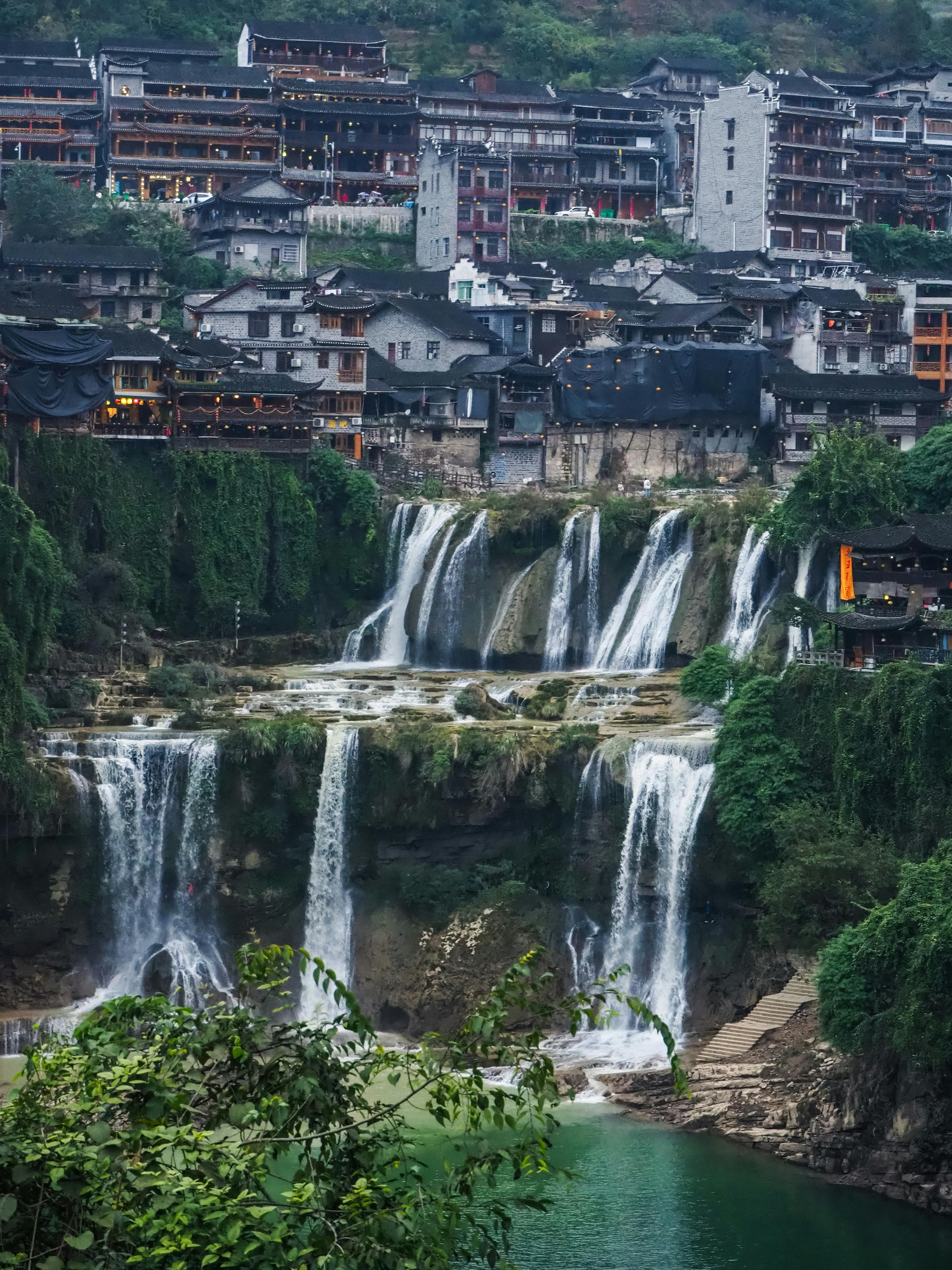 With a history of over 2,000 years, it was once a transport hub for the Tujia kings. The sound of the water is ever-present, and the mist from the falls keeps the town cool and lush even in summer.